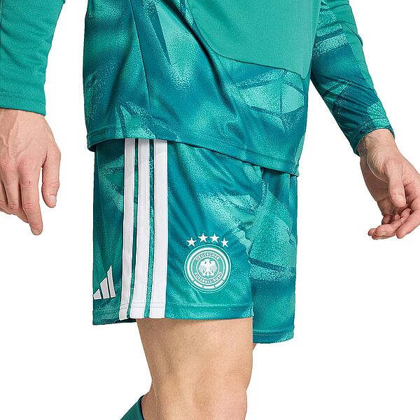 Zur Deutschland 26 Kollektion gehören auch die farblich passenden Shorts und die adidas Stutzenstrümpfe.