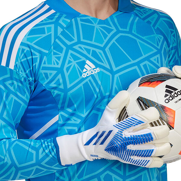 Das Diamond Edge Pack von adidas steht für messerscharfe Instinkte auf dem Platz. Mit der neuen Predator Handschuhkollektion warten neue Torwarthandschuhe auf dich, unter anderem die exklusiven Promo-Modelle mit dem Profi-Schaum URG 1.0. Das Design ist passend zu den Schuhen in einem cleanen Look aus weiß und blau gehalten.