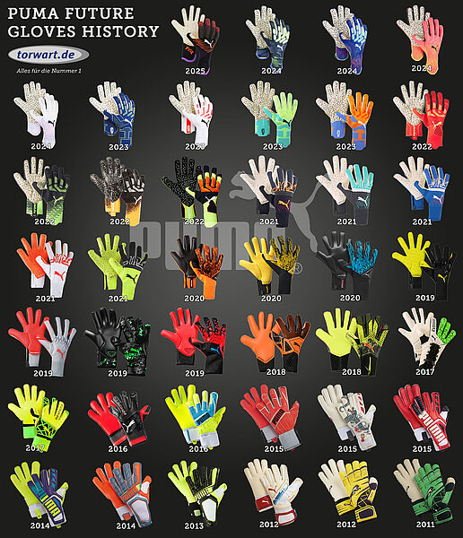 Hier haben wir eine Übersicht aller puma Torwarthandschuhe der Linien Future und Ultra seit 2011 erstellt.