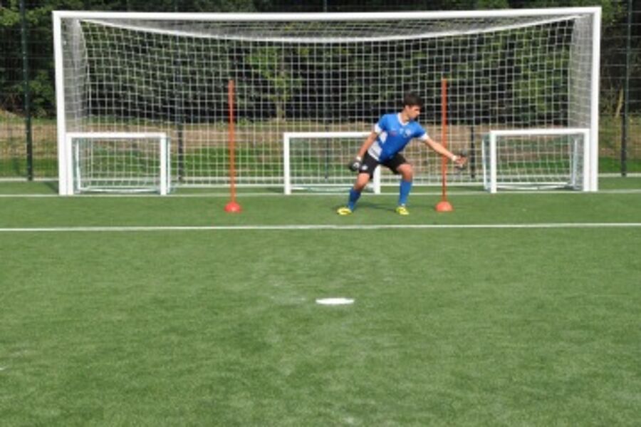 Ein Viereck (14x10m) innerhalb des 16 Meterraums zentral vor dem Tor errichten.