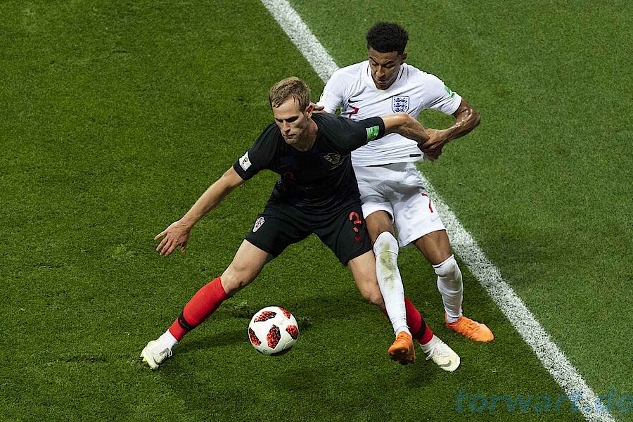 Erst nach einer Viertelstunde kam Kroatien etwas besser ins Spiel, Perisic gab in der 19. Minute aus der Distanz einen nicht ungefährlichen Schuss ab. Pickford aber zeigte ein sehr gutes Positionsspiel und zeigte eine saubere Technik. Kroatien fand ansonsten im ersten Spielabschnitt offensiv nicht mehr statt. Auffallend war dennoch das sehr sichere Spiel mit dem Ball am Fuß des jungen englischen Keepers, der kaum Fehler einstreute und sehr präzise Pässe spielte. Nach der Pause wurde Kroatien aber deutlich besser. Zunächst wurde Perisic mit der bis dahin besten Schusschance der zweiten Hälfte vom Strafraumrand noch geblockt. Doch wenige Minuten später stand es 1:1: Nach einer Flanke von Vrsaljko kam Perisic im Duell mit Walker mit halbhohem Bein artistisch zum Abschluss und bugsierte den Ball gekonnt an Pickford vorbei ins linke Toreck. Pickford war chancenlos. In der 72. Minute gelang Perisic mit einem Schuss an den rechten Pfosten beinahe der Doppelschlag, den Abpraller platzierte Rebic schließlich genau Pickfords Arme.